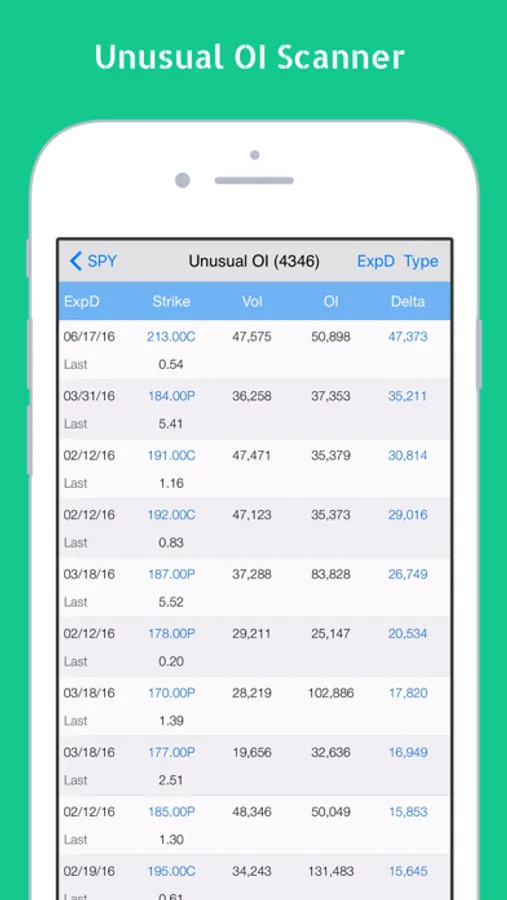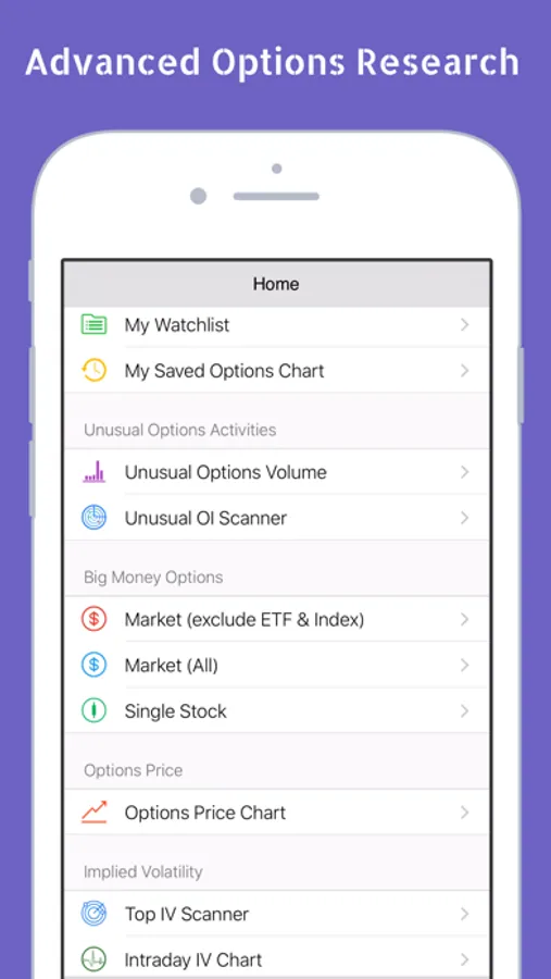 OI app focuses on options and provides you information in a special visualized way. Data cover all available expiration dates, from weekly to leaps. All these come with Real-Time Advanced Stock Quote (Pre and After market included), high resolution Advanced Stock Chart with multiple technical indicators and automatic Fibonacci Lines, multiple Watch-list management, convenient Multi Chart View, Personalized Research Notes, Cloud Sync, Interactive Sector Chart, and more.