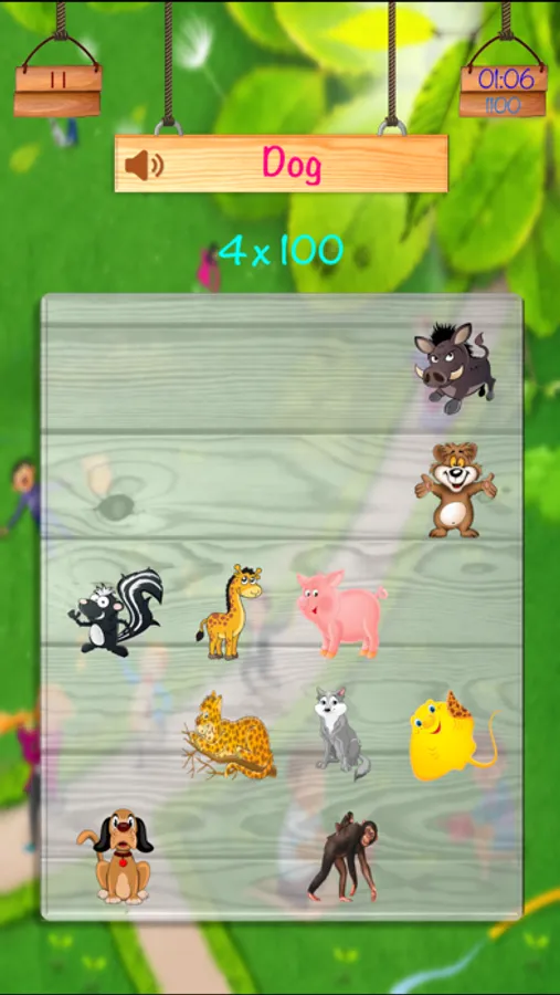 - Playing is as simple as listening to the animal name and finding it in the grid of animals.