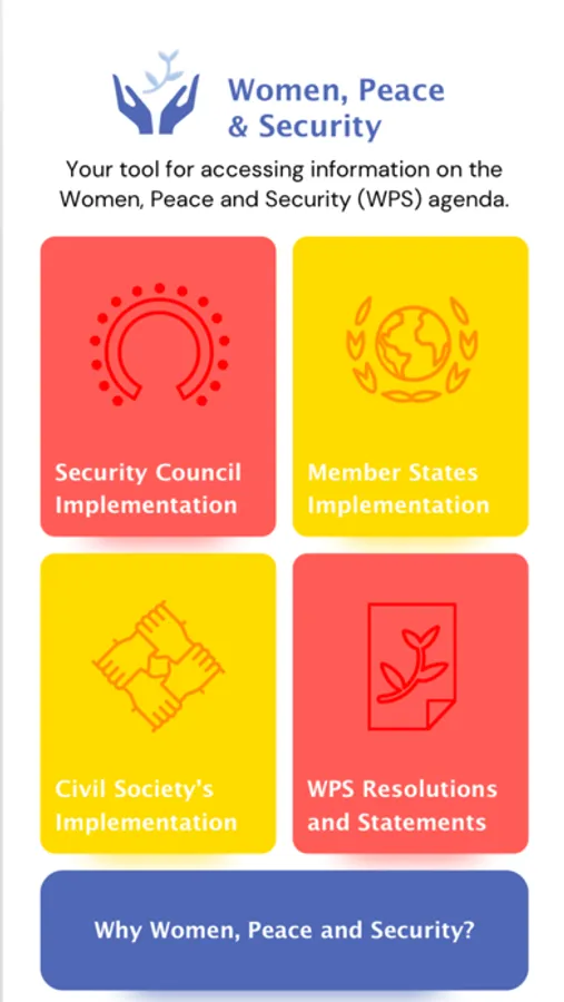 This app is a tool for accessing information on the Women, Peace and Security (WPS) agenda. It is designed for policy-makers, practitioners, academics, advocates, and activists to easily access on-the-go information about WPS implementation at multiple levels. It has six main sections: Security Council Implementation, Member States Implementation, Civil Society Implementation, Resolutions and Presidential Statements, Why Women, Peace and Security, and a Resource Centre.