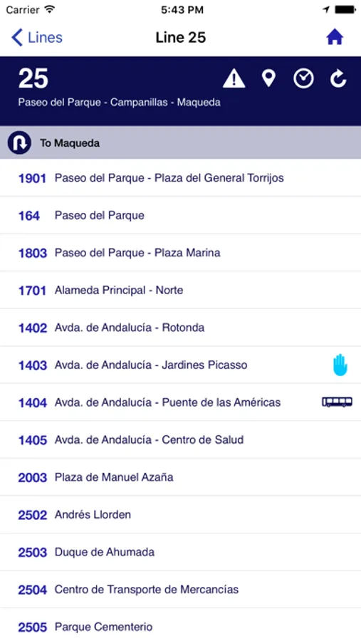 Bus stops information. Know where the bus stops are and what are the lines passing through.