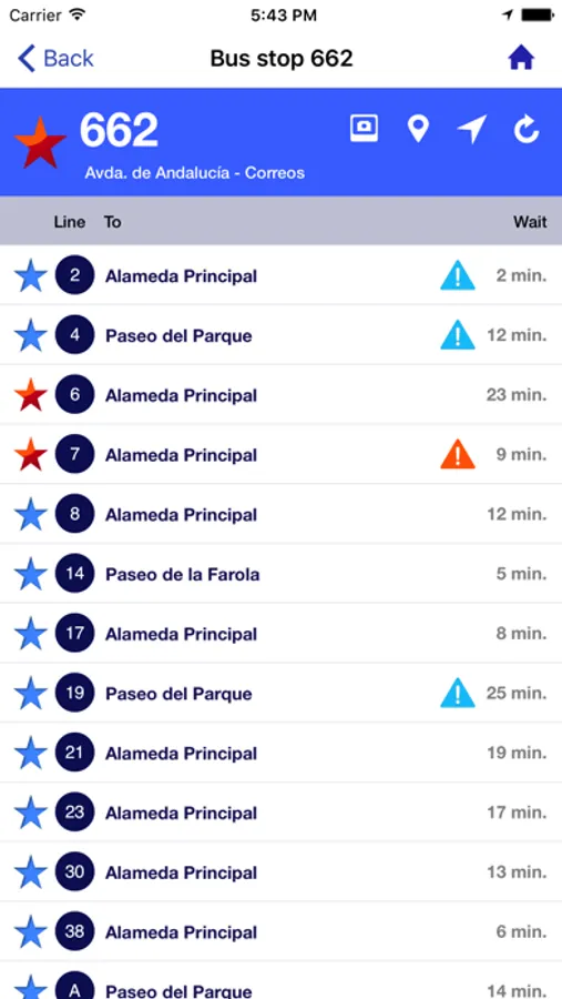 Favorite Bus stops, you can select your most used bus stops as favorites and get immediately the arriving time of buses.
