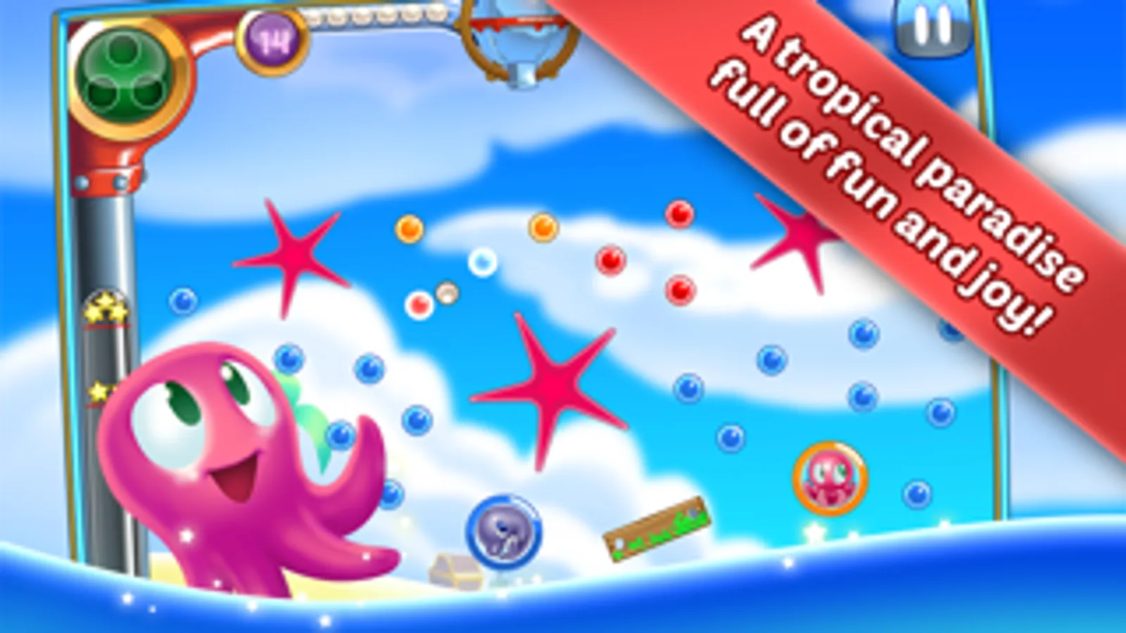 Pearl Pop is a game inspired by pachinko and bagatelle games. With a limited stock of pearls to shoot, you have to hit the bubbles and rescue the pets that are trapped inside them. Also hit pins on the way to score even more points! A star ranking system will add that final touch of challenge to the missions! Try to clear all of them!