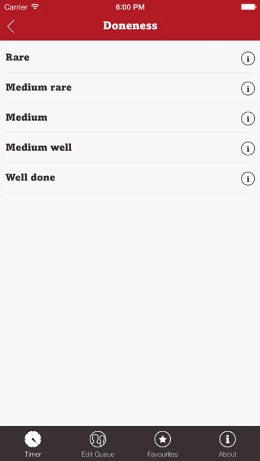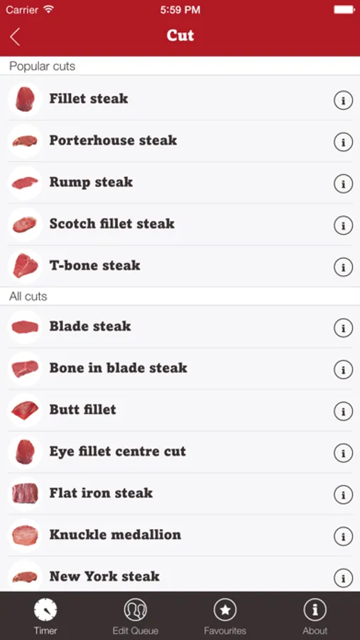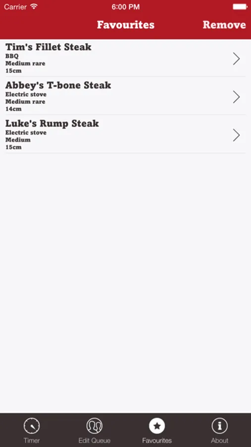 Cooking for more than one? SteakMate has that covered with its queuing functionality, allowing you to add as many people to the queue so that everyone gets their steak cooked the way they like it. Got a favourite steak you like to cook? Why not add it to favourites list in SteakMate so that you are only ever one step away from cooking the perfect steak.