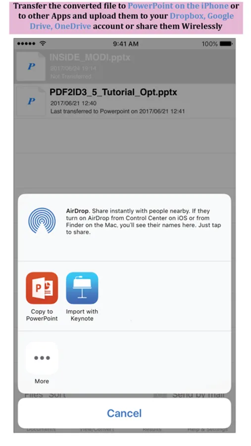* Transfer your converted files to any other software on the iPhone that can accept PowerPoint files.