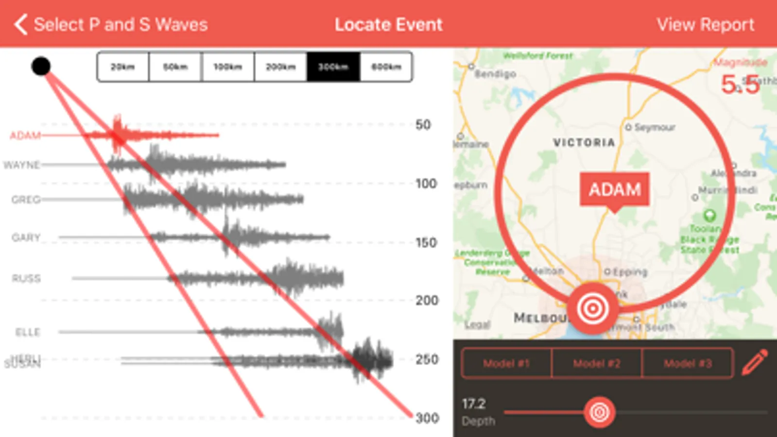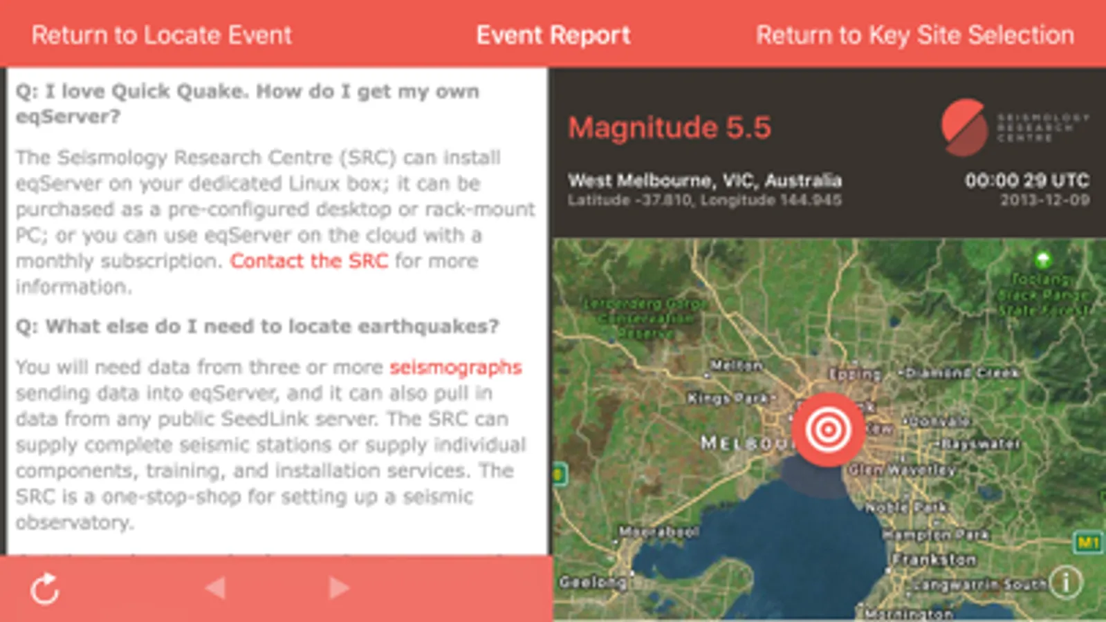 Rapid earthquake location and magnitude verification has never been easier. Quick Quake is also a great educational tool – simply use the demo data to see how P (primary) and S (secondary) waves are used to determine the location of an earthquake.