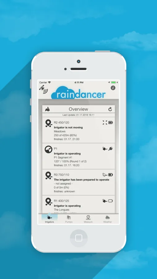 Never miss a status update of one of your irrigation devices. Keep track on their current task, battery state & position.