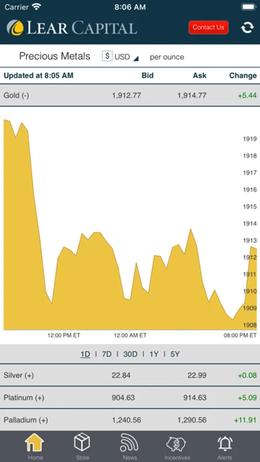 Download the Lear Gold & Silver Daily! app for up to the minute commodities prices (gold, silver, platinum and palladium), breaking news and real time bullion coin prices. This FREE application provides real-time spot prices for gold, silver, platinum and palladium, as well as historical charts covering 7 days, 30 days, one year and 5 years. Since 1997 Lear Capital has been America’s precious metals leader with more than $1.5 billion in precious metals transactions an A+ rating with the BBB. With Lear Gold & Silver Daily!, you can receive relevant precious metals information everyday.