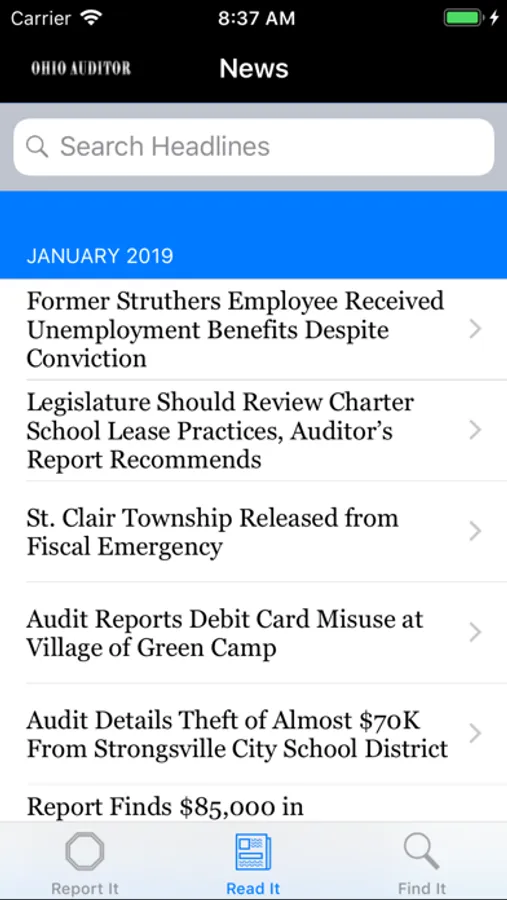 Ohio Stops Fraud tracks reports filed so you can follow-up on an allegation. A news section also connects you with what's happening at the Auditor of State's office - including stories about potential fraud around Ohio.