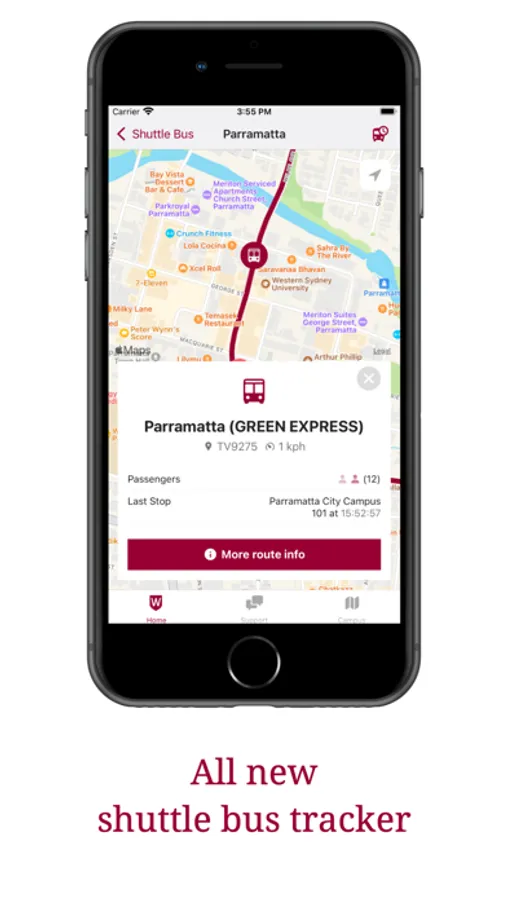Shuttle - See where the campus Shuttle Buses are in real-time, and how many minutes they are away from your stop.