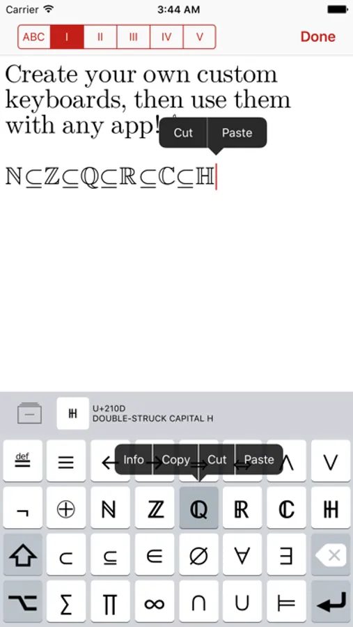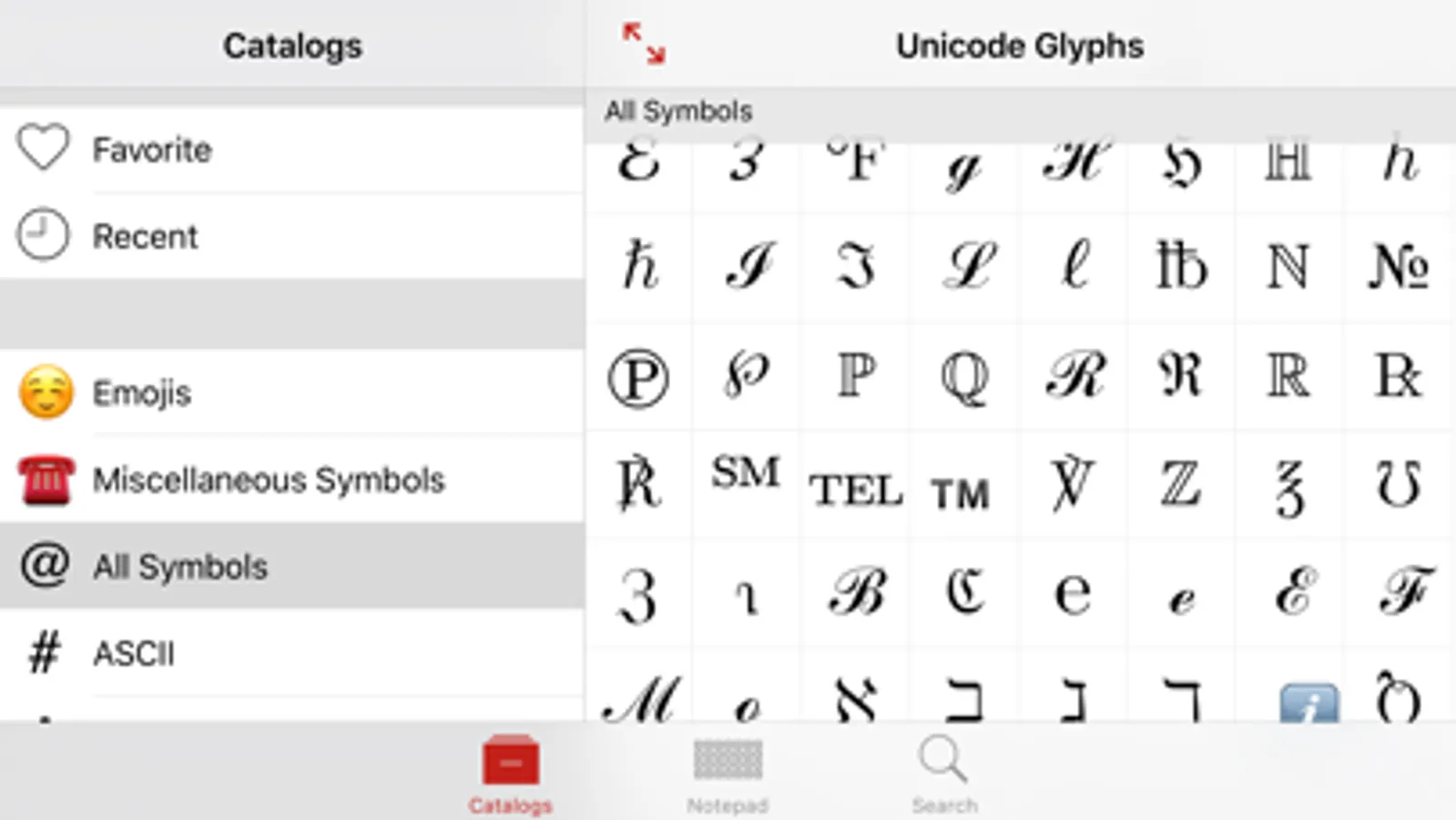 • Copy characters to clipboard for use in other apps, like web, mail, chat, notes... any iOS app!