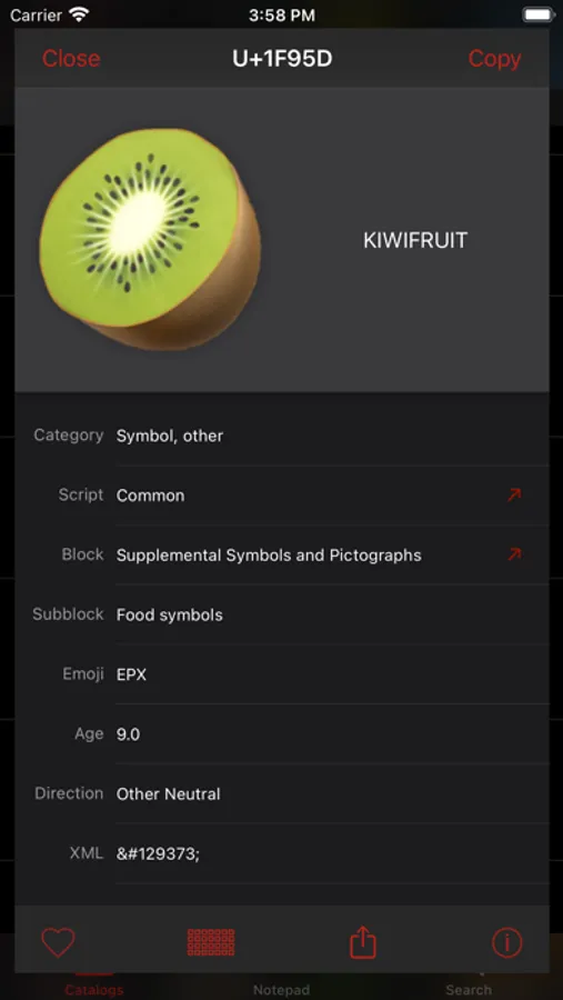 • View extended character descriptions on Wikipedia, unicode.org charts or Emojipedia right from inside the app!