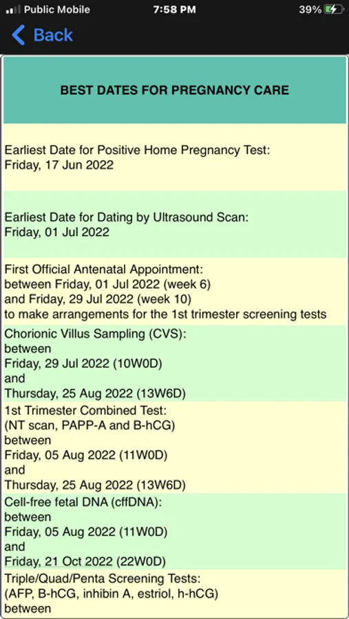 That's it! You will have a comprehensive detailed information about fetal development, fetal measurements, important pregnancy dates, necessary appointments, important tests with correct timeframe for performing them, growth charts for infants, breast feeding information, complementary foods for infants, recommended vaccination schedules, well-child visits, milestones and behaviour of infants and much more.