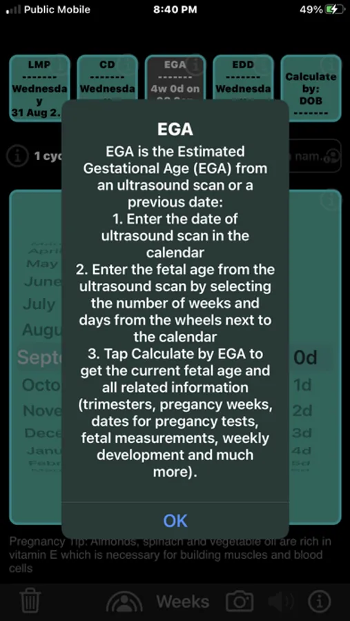 - LMP: 1st day of the last menstrual period