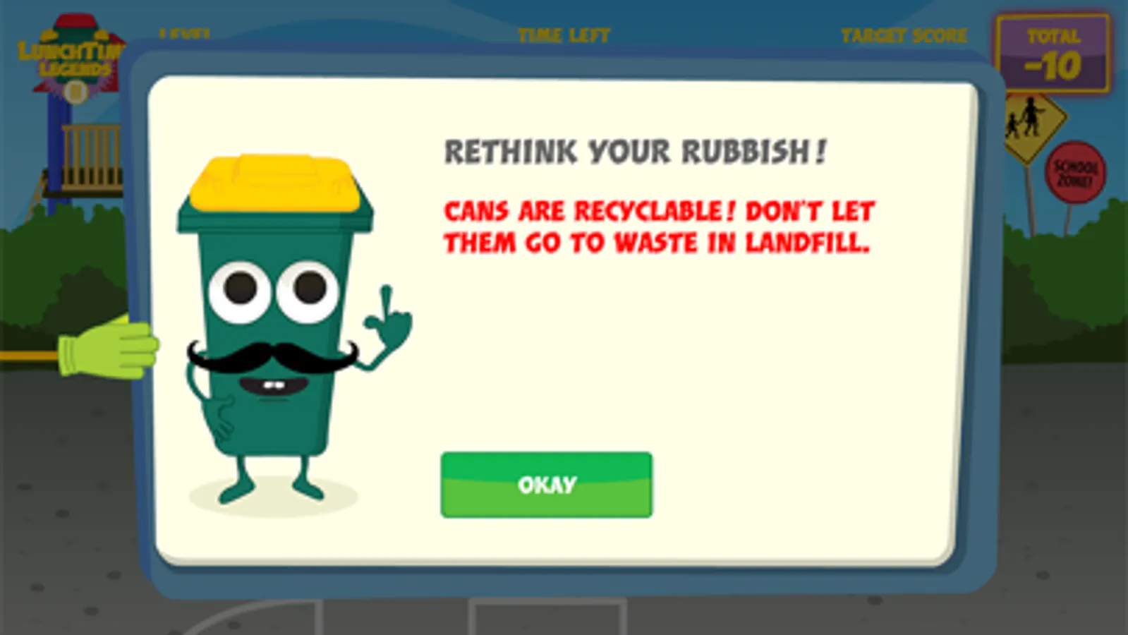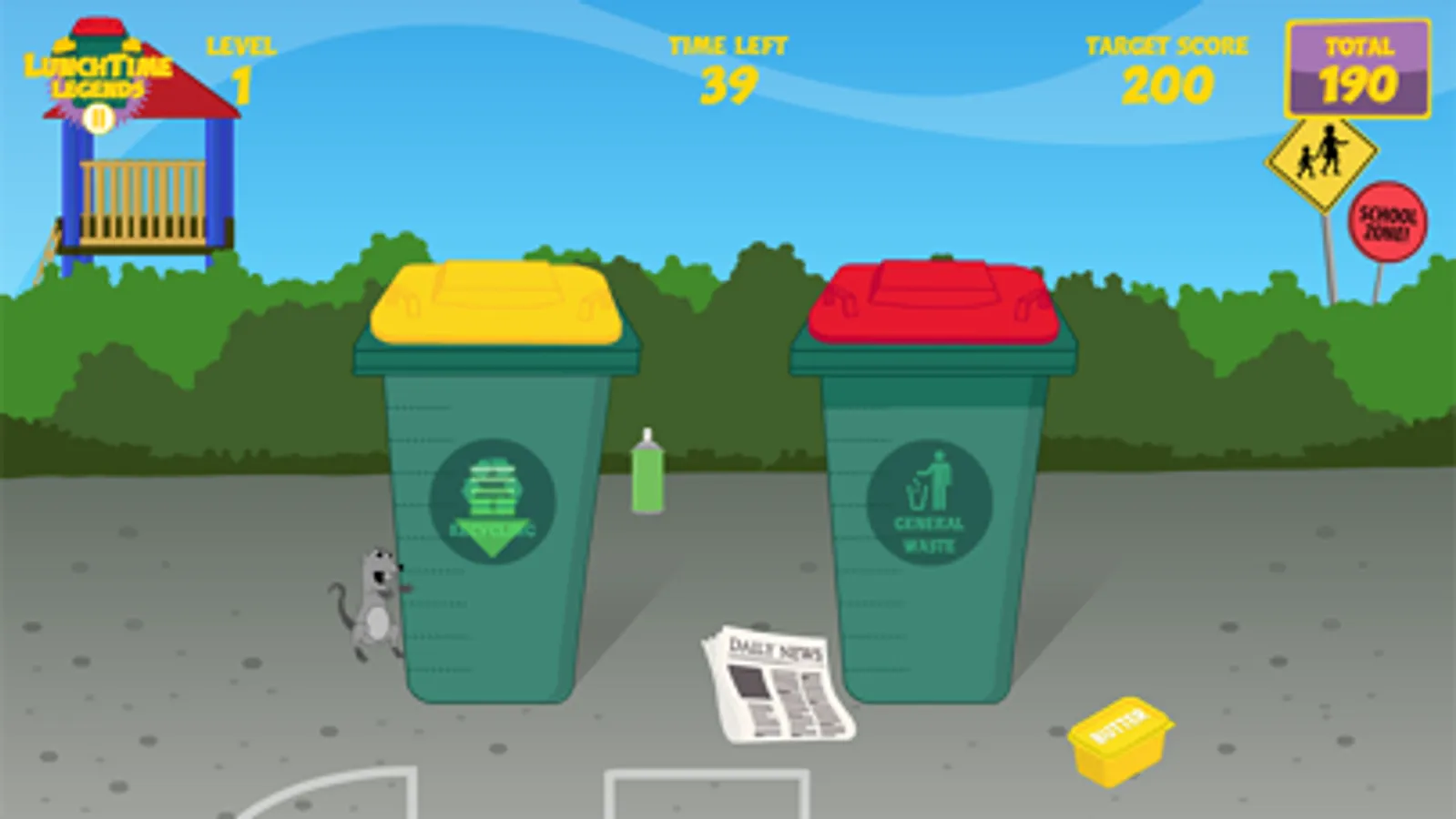 Sort the falling rubbish in to the two school bins, and beat the clock and your friends to become Brisbane’s best recycler.