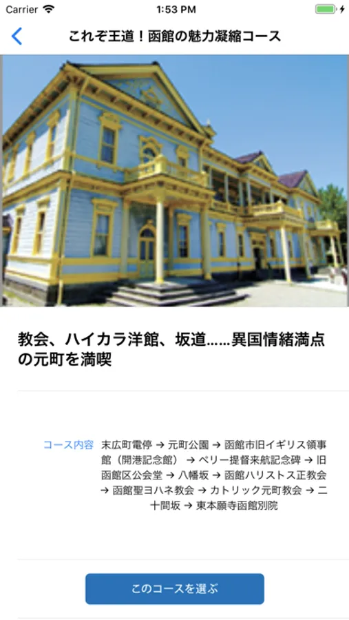 ・おすすめの観光コースから好きなものを選ぶと、コースが地図に表示されます。