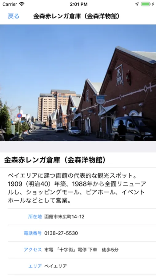 ・観光スポットの所在地、電話番号、紹介記事などを見ることができます。