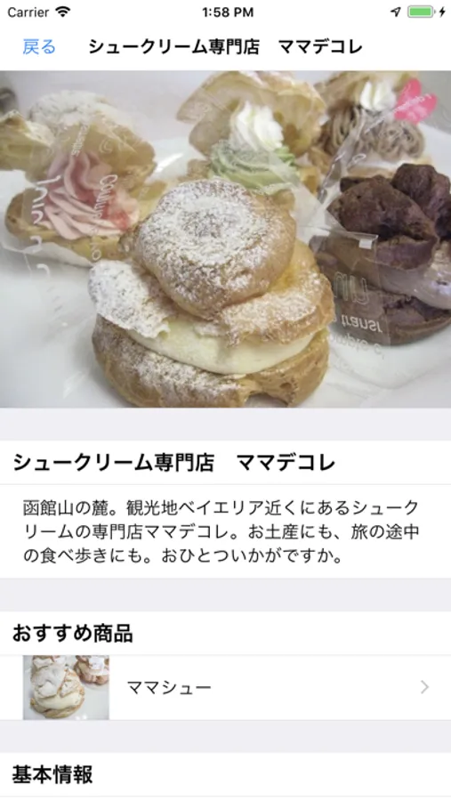 ・スイーツ店の所在地、電話番号、おすすめ商品などを見ることができます。