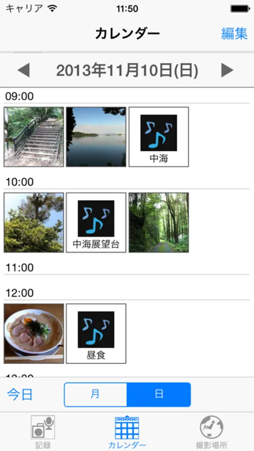 ・その日に撮影・録音した内容をカレンダーから選び詳細情報の確認が簡単!!