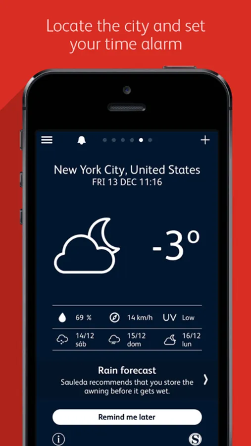 Every day it informs users of the weather forecast at the requested time, thus helping users to organise their day.