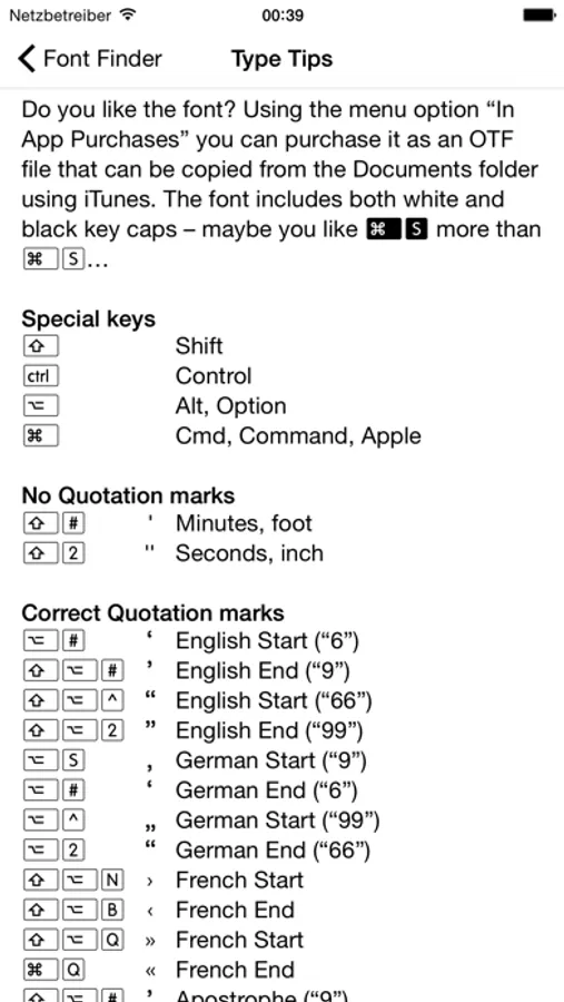 Font Finder is a very useful tool for all iOS developers, typo and graphic designers who are dealing daily with typography. Type First! - since iOS 7 typography is the most important design element that will continuously replace the graphics. The Font Finder actually goes, apart from its app icon, entirely without bitmaps - and helps you to increase your knowledge about fonts and to develop the optimal typography for your apps.