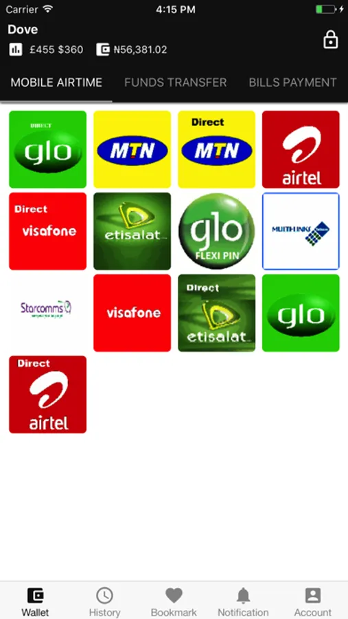 With this app you can send money into any bank account in Nigeria, you can top-up any phone with just the phone number and you can pay all the major bills, like DSTV,PHCN and School Fees.