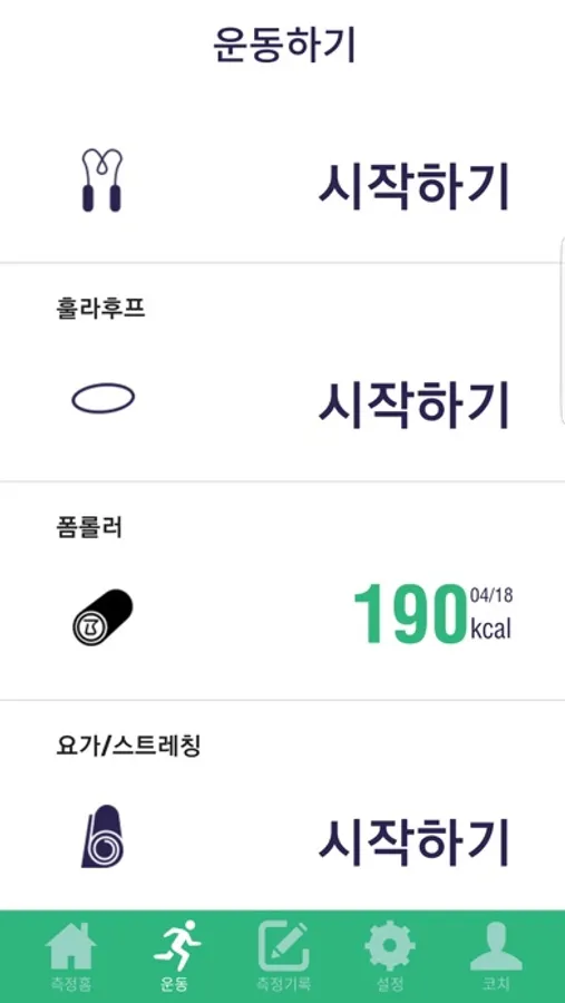 ① 앱화면 하단의 운동메뉴를 클릭하여, 운동을 설택