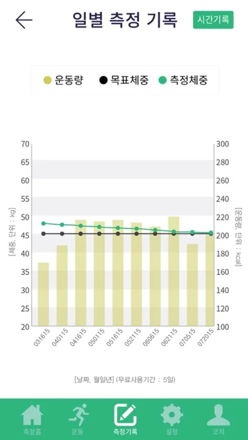 ④ 측정한 신체정보를 기록하여 그래프로 관리