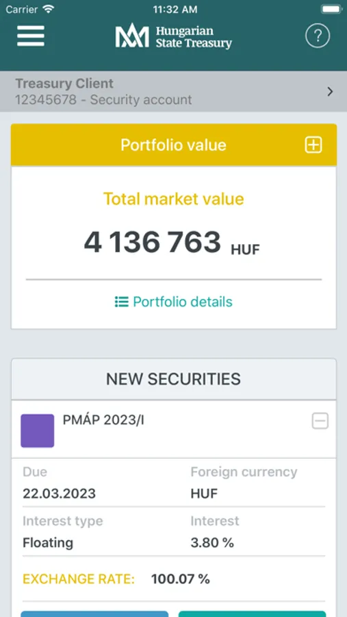 The MobilKincstár is a service of the Hungarian State Treasury’s (hereafter: „Treasury”) via mobile phone application which is operated as an information and securities distribution service. By use of MobilKincstár application you can manage from anywhere at anytime your matters of securities registration account.
