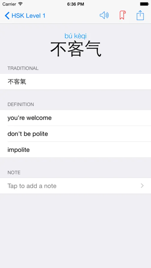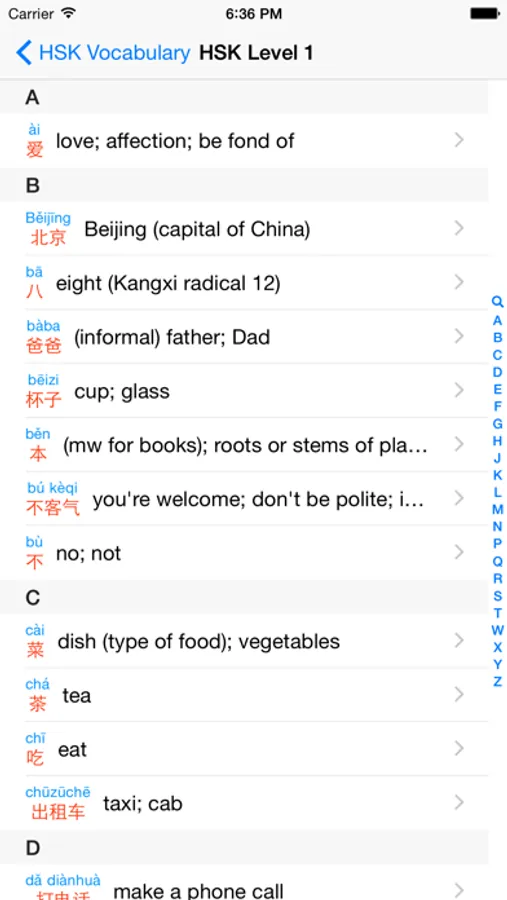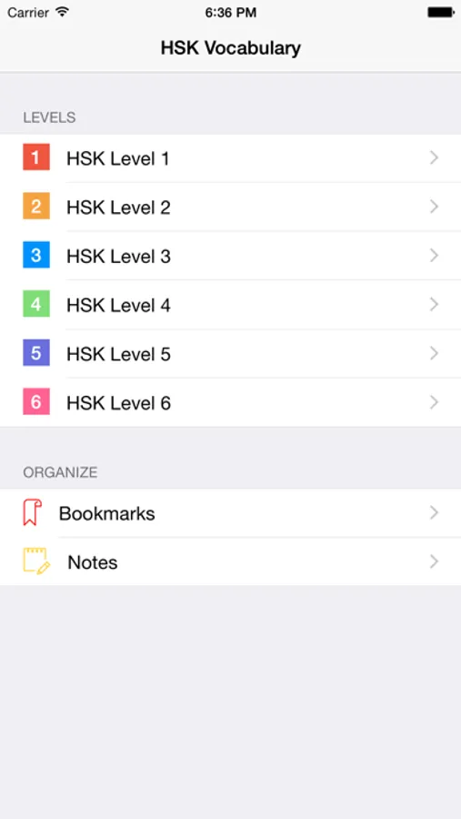 • HSK Level 1, 2, 3, 4, 5, and 6 (2, 3, 4, 5, and 6 are available with In App Purchase)