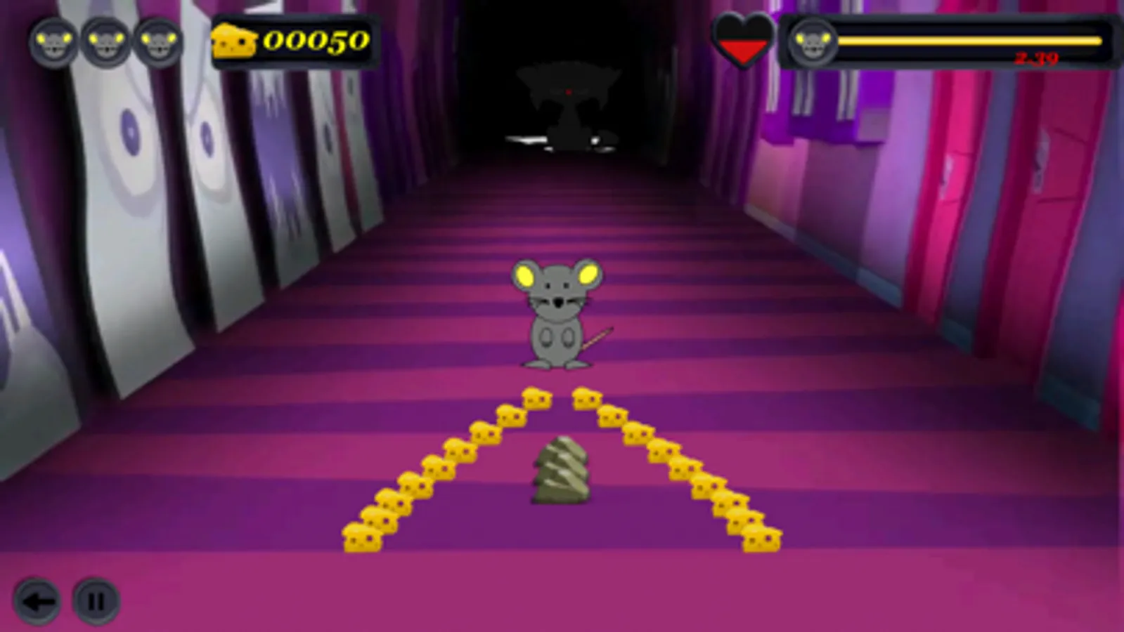 This game gives you tremendous Tom&Jerry style experiences which has put the most popular game elements nowadays together. It has different scenes and difficulty levels. The task is collecting as much cheese as you can by jumping over rocks, kicking boxes and staying away with dangerous armaduras, antorchas and punching gloves.
