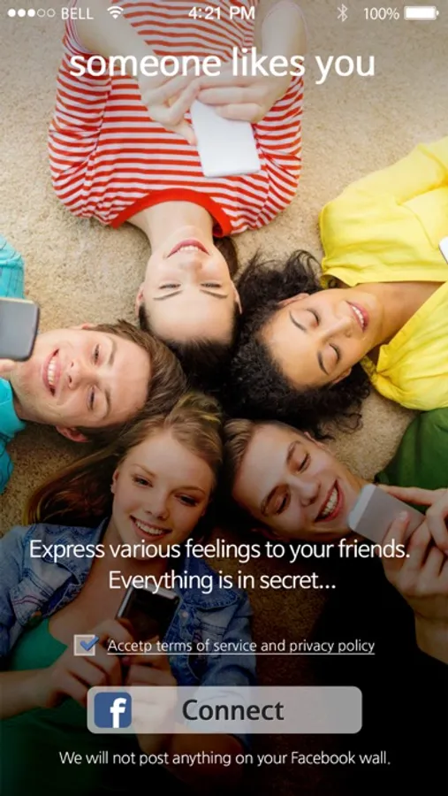 You don’t have to sign up for Someone likes you. Just press ‘Connect with Facebook’ button. It will directly connect to your Facebook account and bring some information such as your profile picture, name, birthday and location. This information will be shown to your friends. There’s no excessive disclosure of privacy because the information released on Facebook is shown.