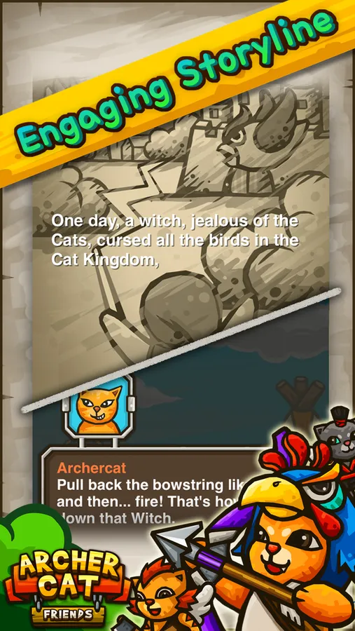 Embark on an epic journey to save the Cat Kingdom from the evil Witch and her accursed birds!