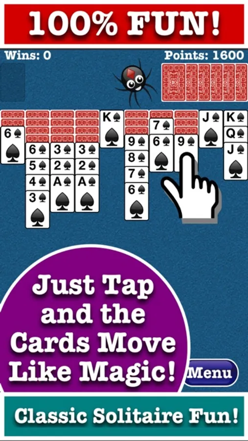 • NEW - optional video tutorial teaches you how to play Spider if you're new to playing!