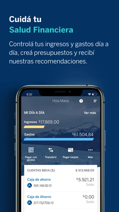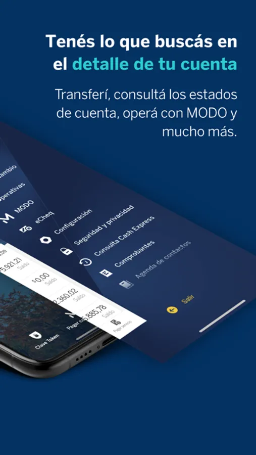 Tené el control de tus finanzas, consultá tus cuentas, movimientos y detalles. Además hacé tus operaciones de forma fácil y segura. En cualquier momento y lugar.