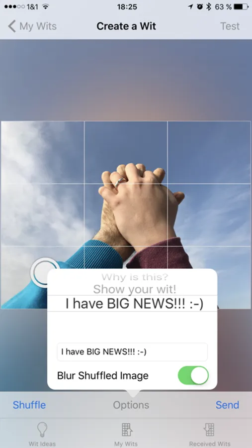 Facebook, WhatsApp, Twitter … have your friends look closer with WIT. Surprise, amuse or challenge them. WIT converts any photo into a puzzle, even with a nice hiding blur-option. Make your photos stand out – send them as a Wit. Your friends can solve them right in the webbrowser or in "World of WIT".