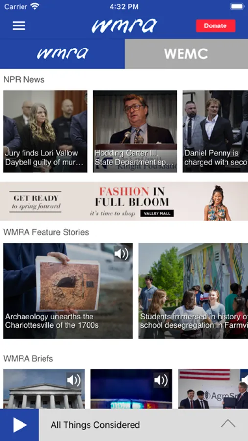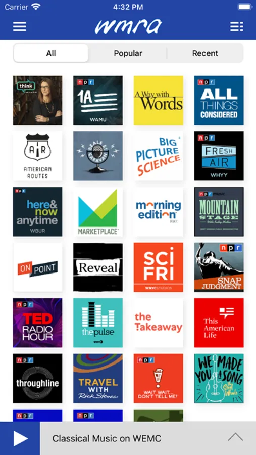 The WMRA App allows you to listen to WMRA and WEMC, pause and rewind the live audio, and view the program schedules for WMRA and WEMC all at once! You can explore On Demand content, search for programs, bookmark a program for later, and wake up to WMRA and WEMC with the alarm clock!