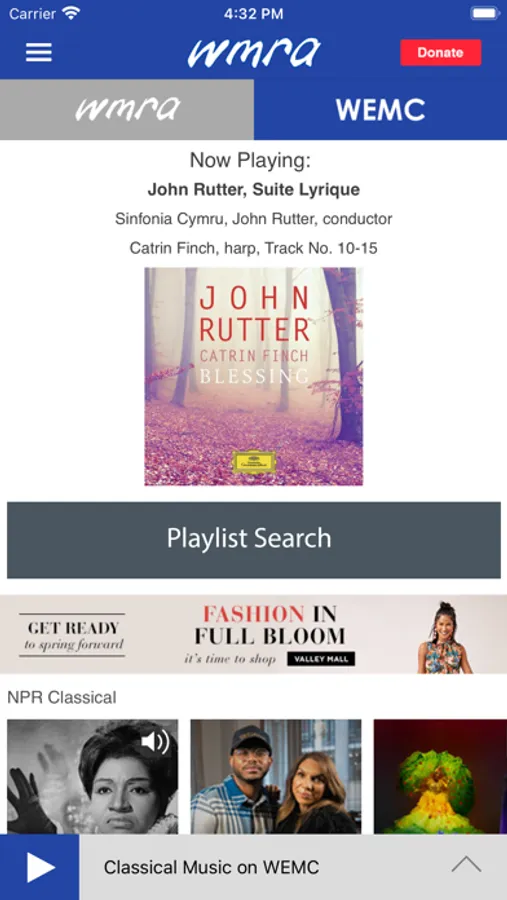 • Listen to WMRA and WEMC in the background while browsing the web or catching up on your emails!
