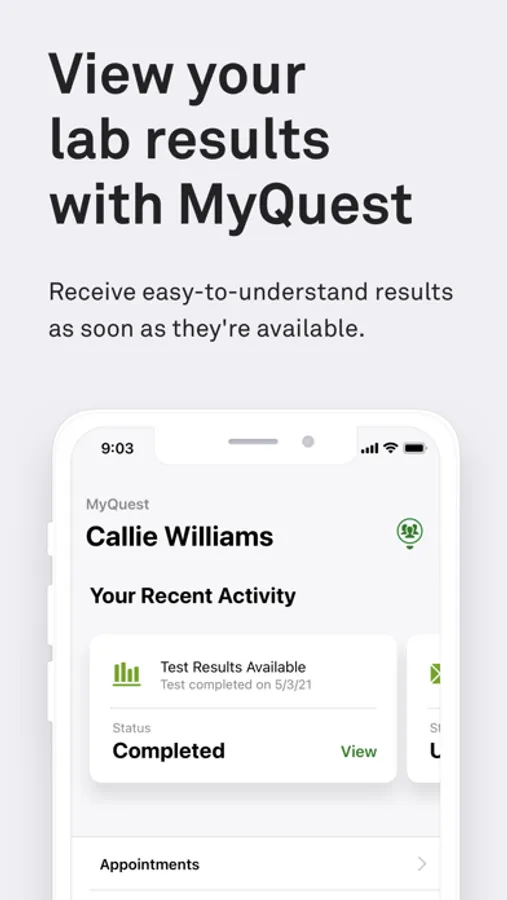 With the MyQuest app from Quest Diagnostics, all your lab results and appointments are at your fingertips – so you have the information you need to stay healthy: