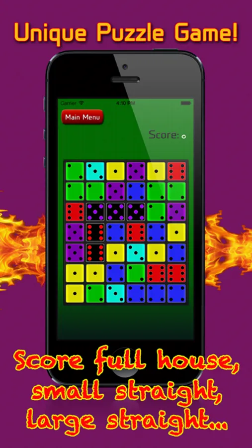 Match two, three, four of a kind, match a full house, small straight, large straight or a five of a kind for a bigger score!!!!