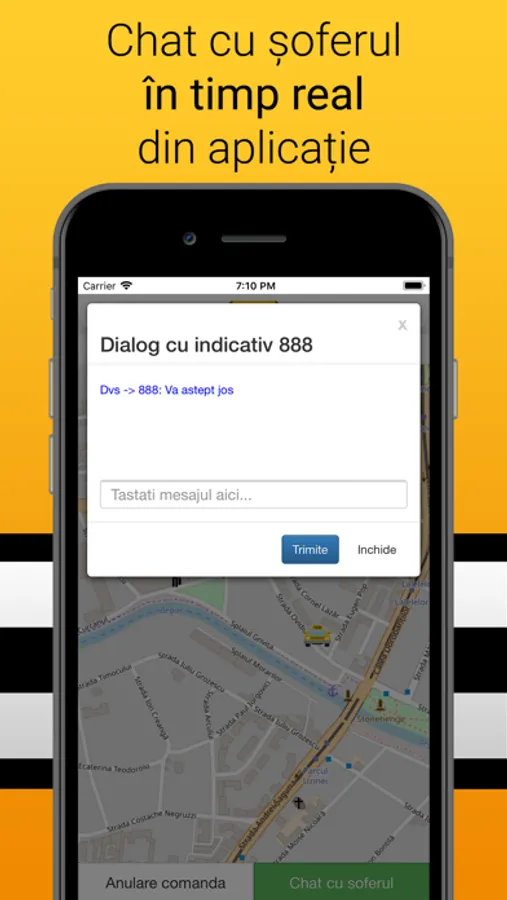 Legatura ta este directa cu cel mai apropiat taxi disponibil, fara interventia vreunui dispecer. In mod sigur chat-ul cu soferul iti va folosi.
