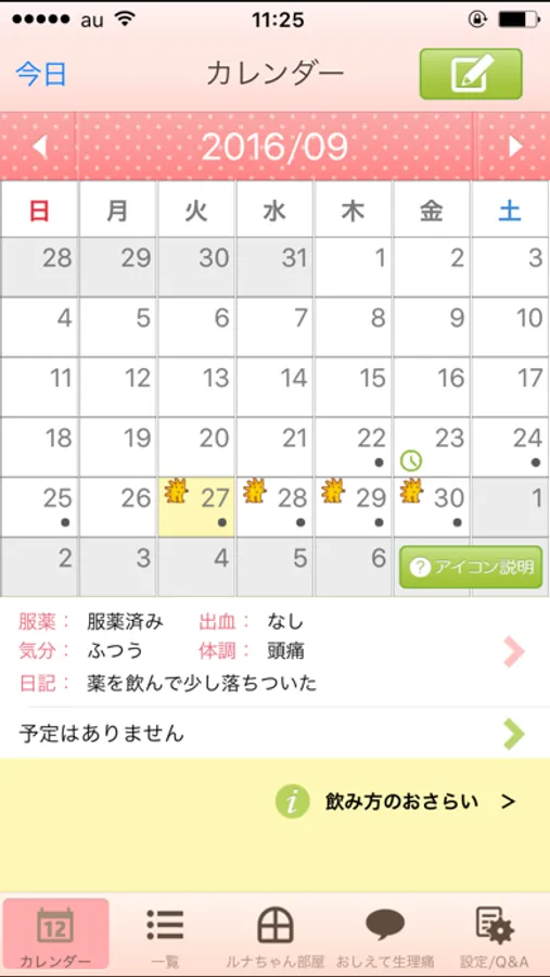 ■ルナベル服薬日記の主な機能■
