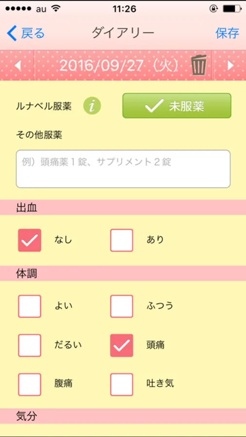 ・その日の体調や症状記録+プチ日記機能