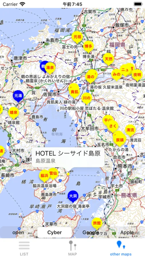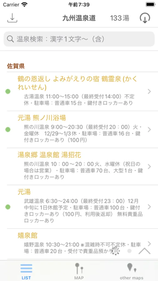 全温泉リスト、検索、マップ機能等々により、あなたの