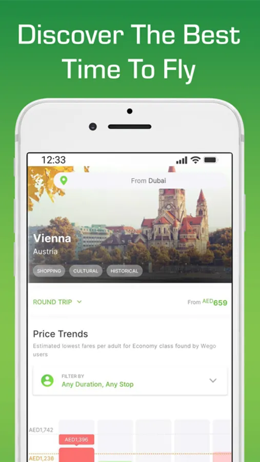 You can easily find the cheapest months to fly to a destination by using Wego’s Price Trends feature (powered by our price prediction model). Price Trends shows you the lowest fares found in each month (for the period of the next 12 months), and from there you can easily select from a big range of flight deals.