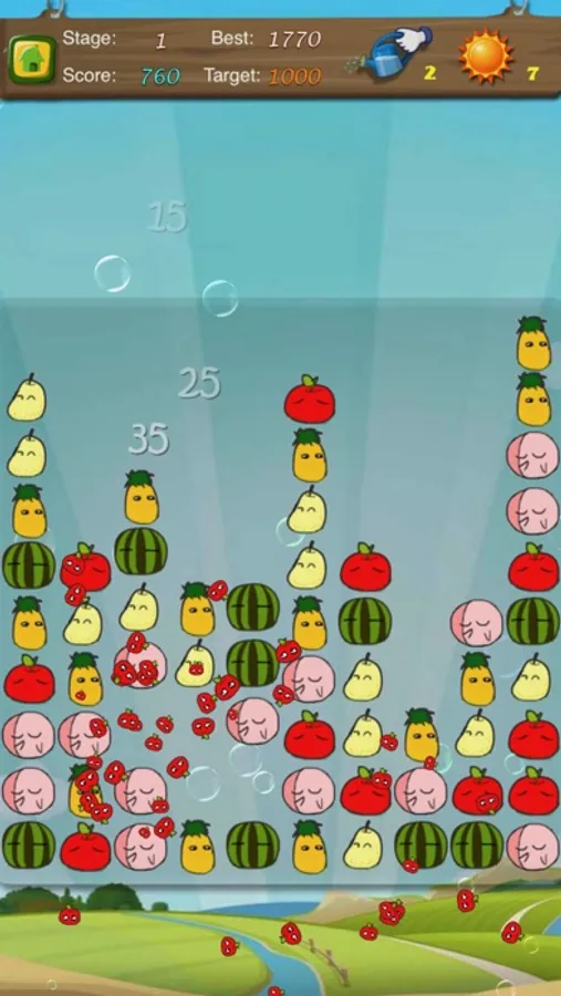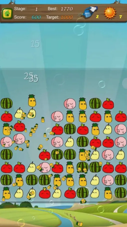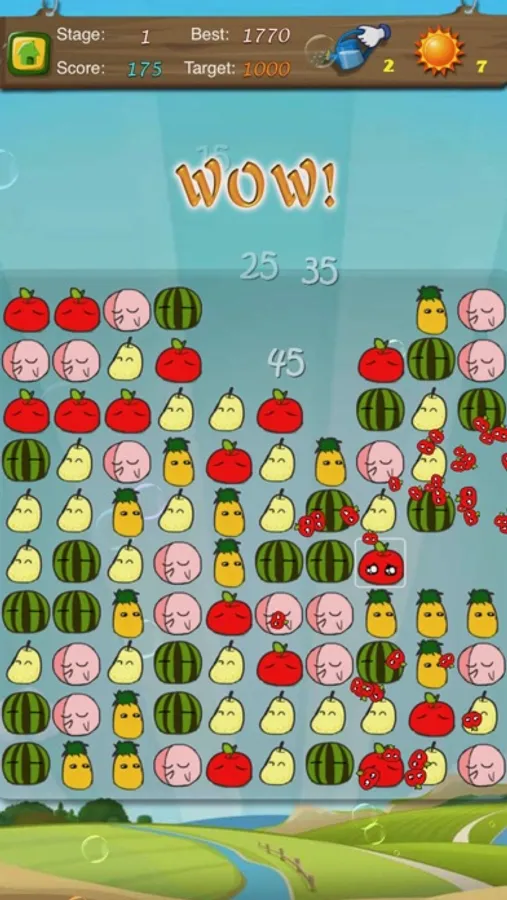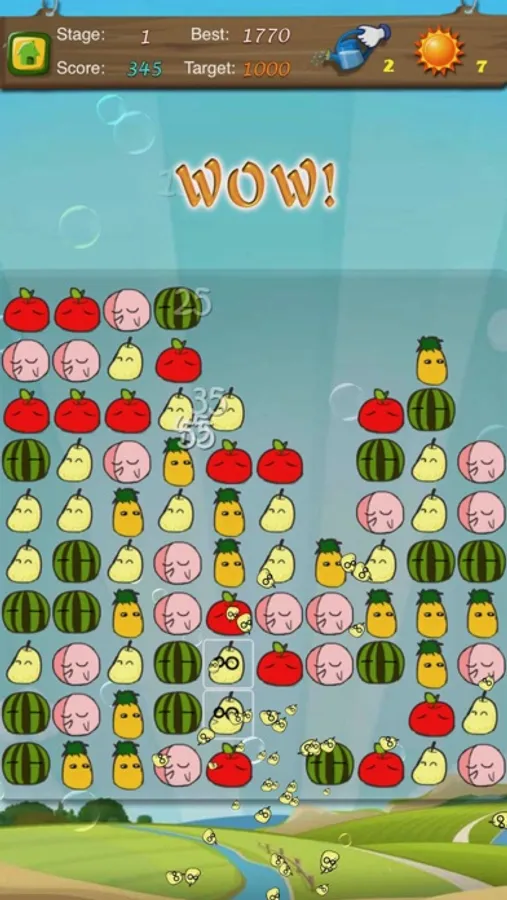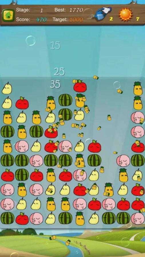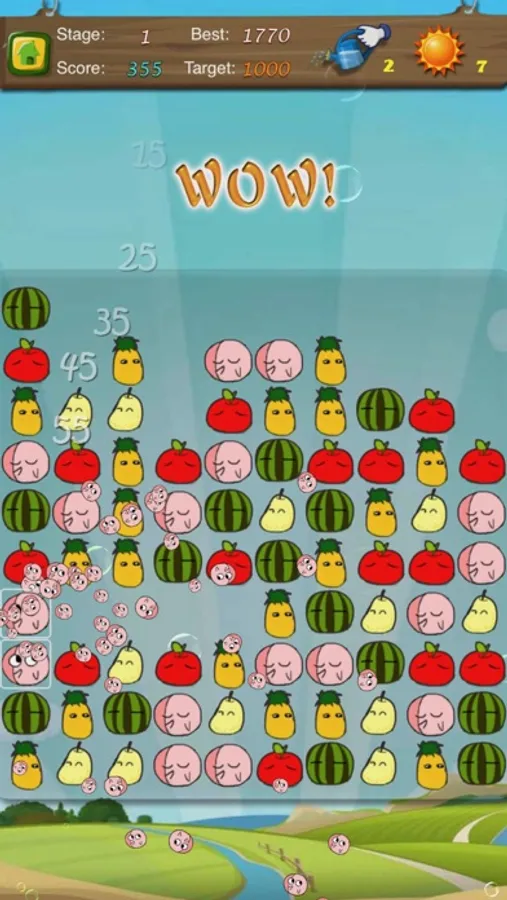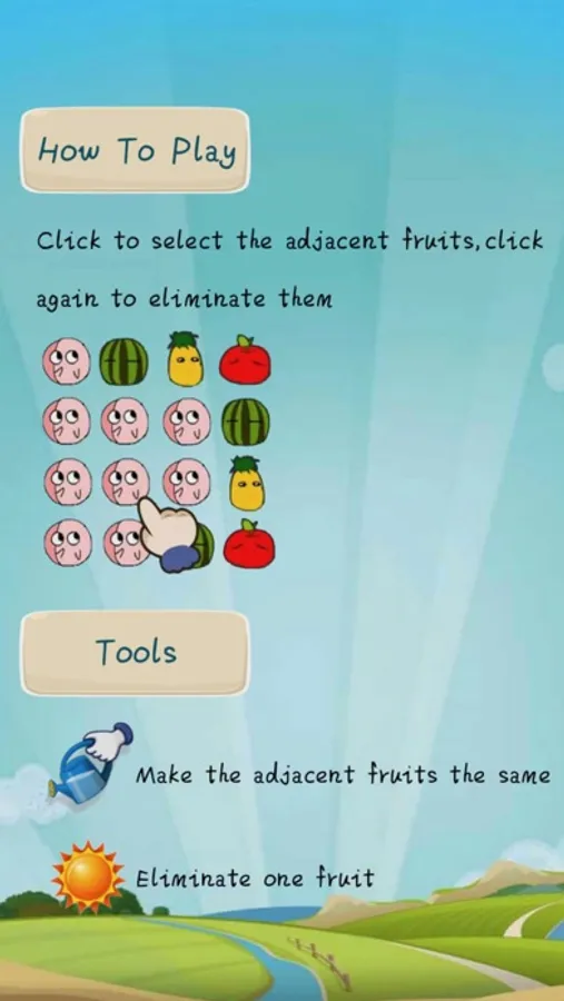 The elimination of the adjacent Fruit can get the points, the rational use of props can make you get more points