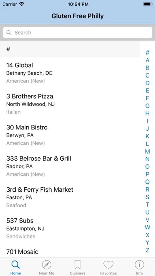 The best of the award-winning Gluten Free Philly blog is now in the palm of your hand. Find more than 1,600 curated gluten-free-friendly restaurant, bakery, market and attractions listings covering southeastern Pennsylvania, southern New Jersey and all of Delaware, with new listings frequently added. Search by name, location or cuisine, view gluten-free-friendly menus and options, get directions, and call listed businesses from your phone.