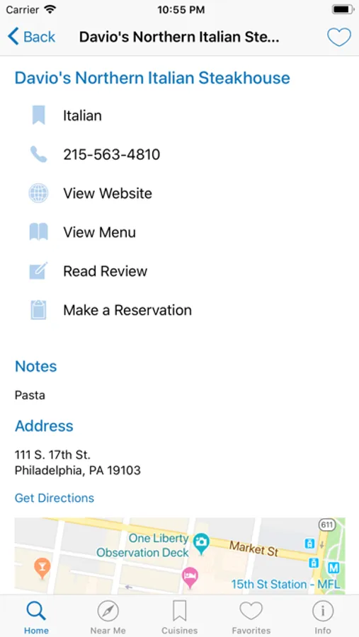 * One-click access to business websites, gluten-free-friendly menus and options and Gluten Free Philly reviews (where available)
