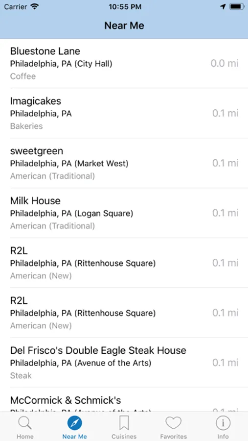 * Find businesses nearest your current location in the greater Philadelphia area using the Near Me feature
