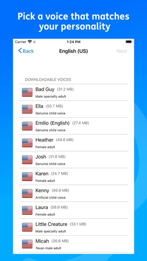 • Choose from over 100 voices in 18 languages, so you can find the one that sounds most like you. Switch easily between languages.