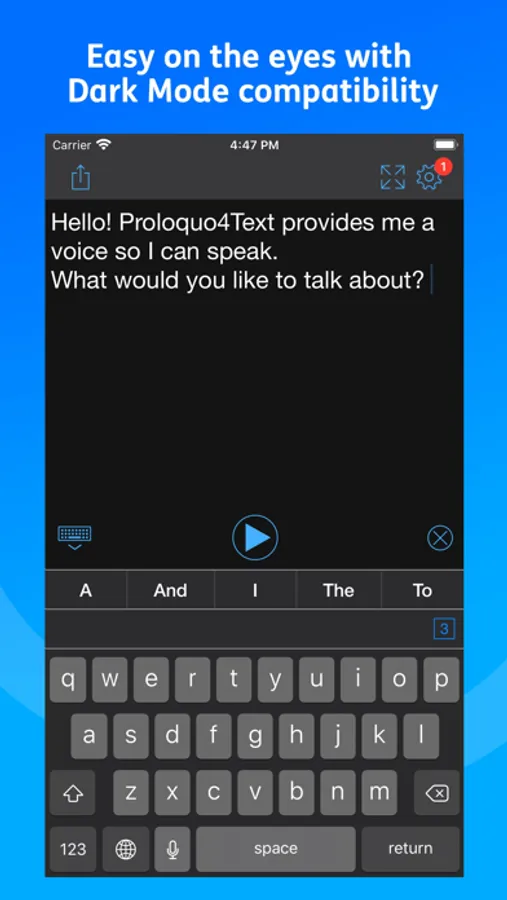 Proloquo4Text™ is a text to speech app for those who cannot rely on their voice to speak. The app is laid out on a single screen to reduce the effort of typing. The layout enables easy, daily conversation and quick access to your most common phrases. Personalize it to your needs and preferences, whether that’s through choosing from the many voices available, or through customizing your screen layout.